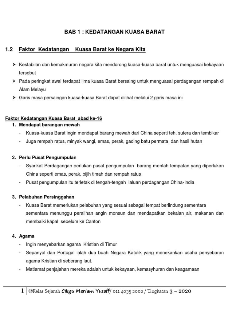 Bab 1 Faktor Kedatangan Kuasa Barat Ke Negara Kita Pdf